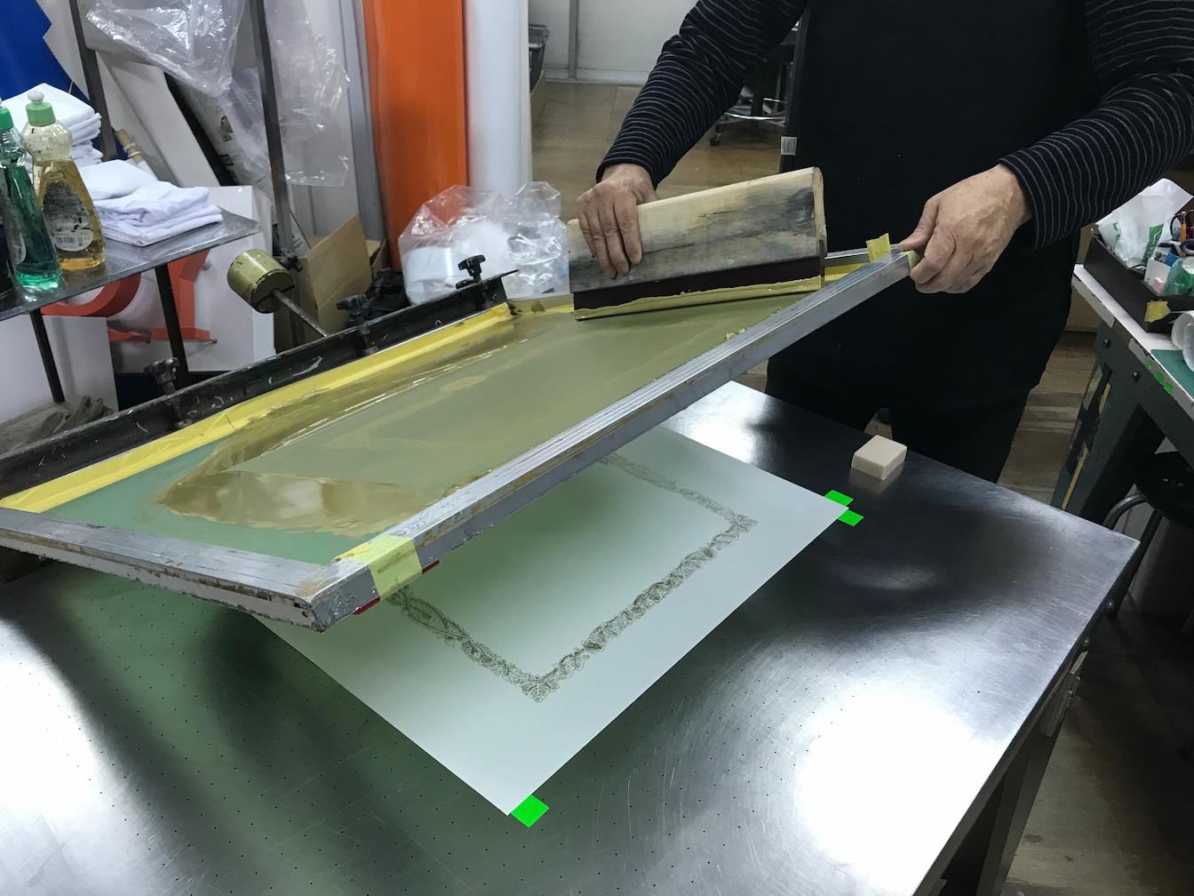 シルク印刷(シルクスクリーン印刷)は、スクリーン板にインクをつけて印刷する方法です。